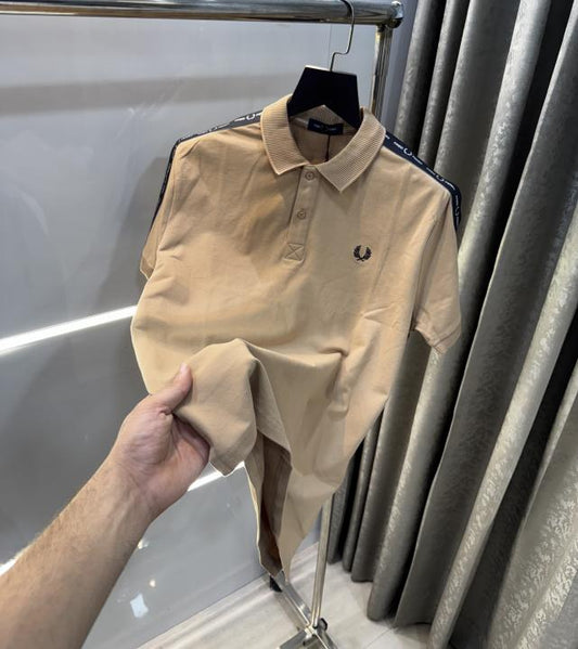 Fredperry Beige Embroidery Logo Premium Polo T-Shirt