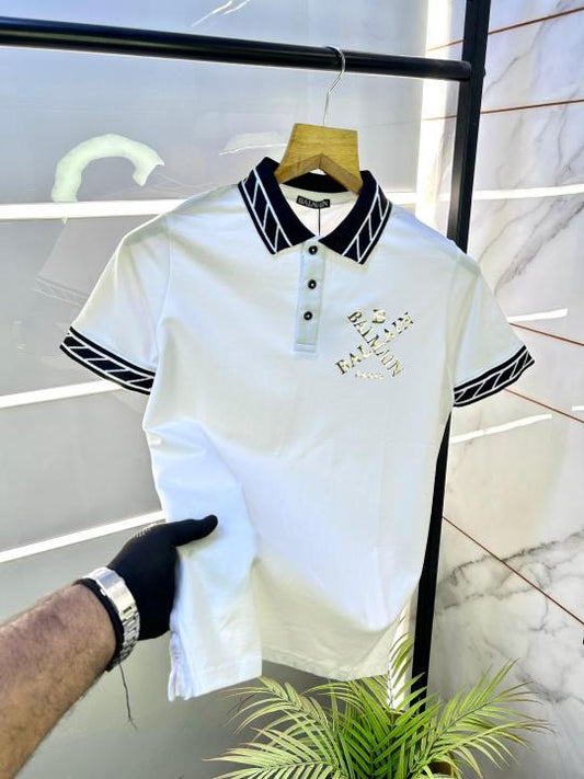 Balmai_n Paris Logo White Premium Polo Neck Tshirt 471