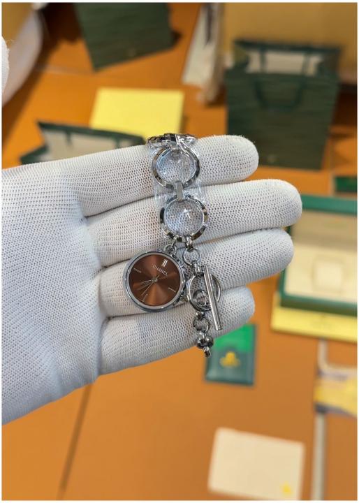 Timeless ladies watch with a unique chain bracelet and refined round dial.